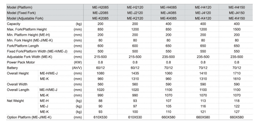 Electric Fork/Platform Stacker ME-H/ME-J/ME-K Series
