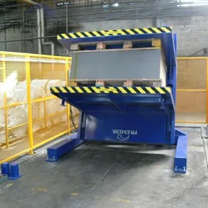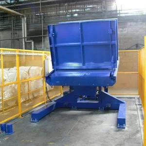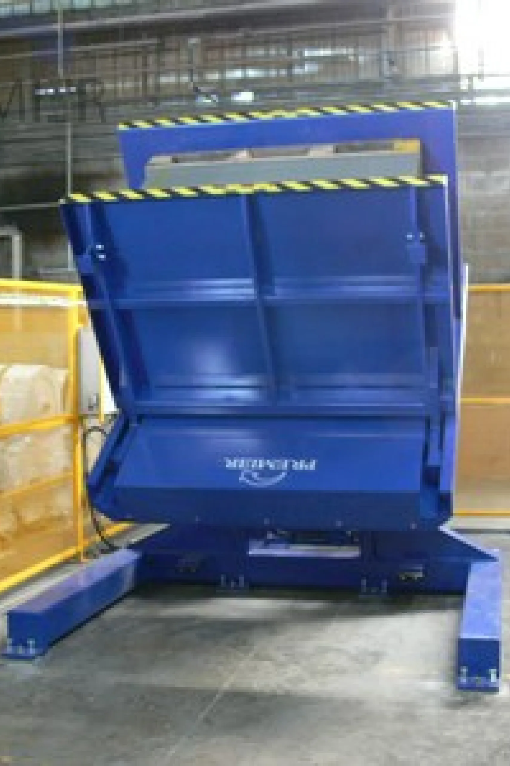 The RR Type 1 is almost always supplied as a fully automated and guarded system custom-built to suit the individual user’s needs. Premier have built machines with up to 10,000 kgs capacity and could go higher than this if the need arose. It is certainly a machine which is aimed more at load inversion than as a method of pallet exchange, but with wide or overweight loads there is no better method of handling.