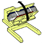 The RR works on a totally different principle to the other styles of 180 degree inverters, the letters in its title standing for “recline and rotate”. This method of tipping the load through 90 degrees onto its back so that it is centralised over a turntable is an ideal one when handling very wide or heavy loads. It can be built with single or dual clamping tables to any width or depth. The jaw opening is also totally variable, though normally the loads it has to handle are not that high.